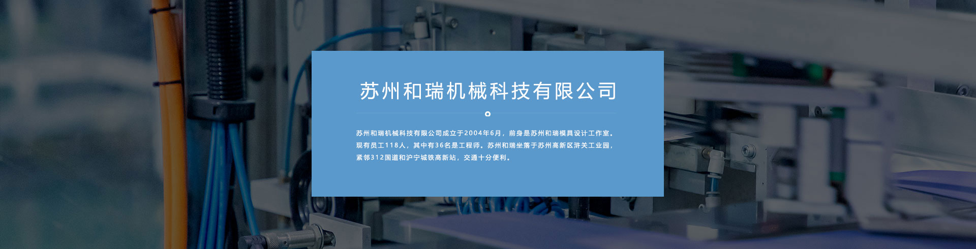 蘇州和瑞機(jī)械有限公司成立于2004年6月,前身是蘇州和瑞模具設(shè)計(jì)工作室?,F(xiàn)有員工118人,其中有36名是工程師。蘇州和瑞坐落于蘇州高新區(qū)滸關(guān)工業(yè)園,緊鄰312國(guó)道和滬寧城鐵高新站,交通十分便利。